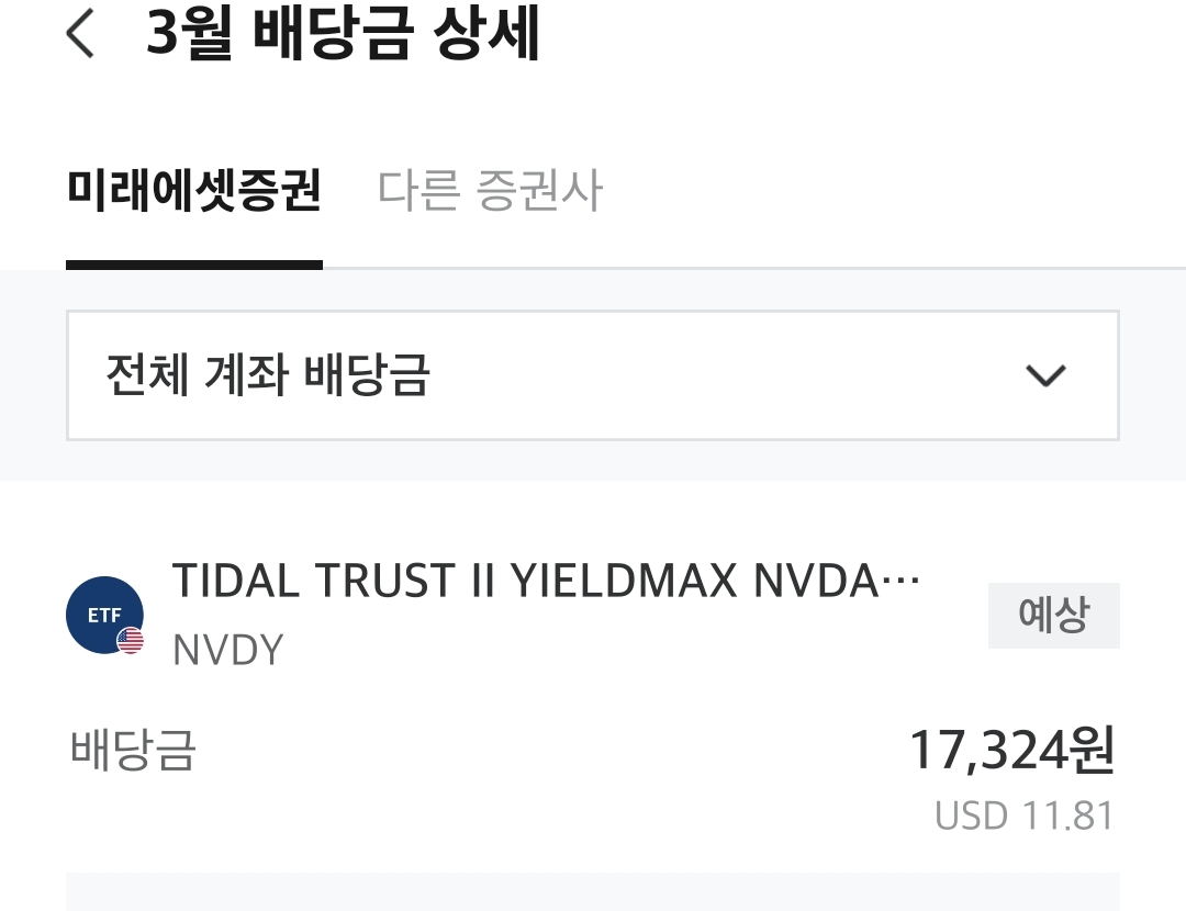 홀려서 구매했던 NVDY 배당이 들어온다고 한다.